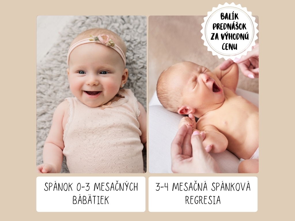 Prednáška o spánku 0-3 mesačných bábätiek vás bude sprevádzať spánkom vášho bábätka prvé mesiace jeho života. Vďaka prednáške budete vedieť, čo môžete očakávať od spánku novorodenca, ako dieťatko uspať a upokojiť ale aj ako pracovať jemne na zdravých spánkových návykoch a mnohé iné. Spolu s prednáškou budete vedieť, ako zvládnuť najčastejšie spánkové situácie vášho dieťatka a ako zlepšiť jeho spánok.